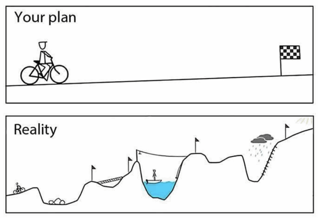 부푼 기대를 가득 안고 자전거에 계란 바구니를 담아 길을 가는 순간 깨닫게 될 거다. 아, 이거 장난 아니구나. 대부분의 경우 아래와 같은 상황을 한 번 혹은 여러 번 겪게 된다. 마치 어린 시절 보던 만화에서 처럼 아.. 이제 끝난건가? 하는 순간 다음 시련이 찾아온다.