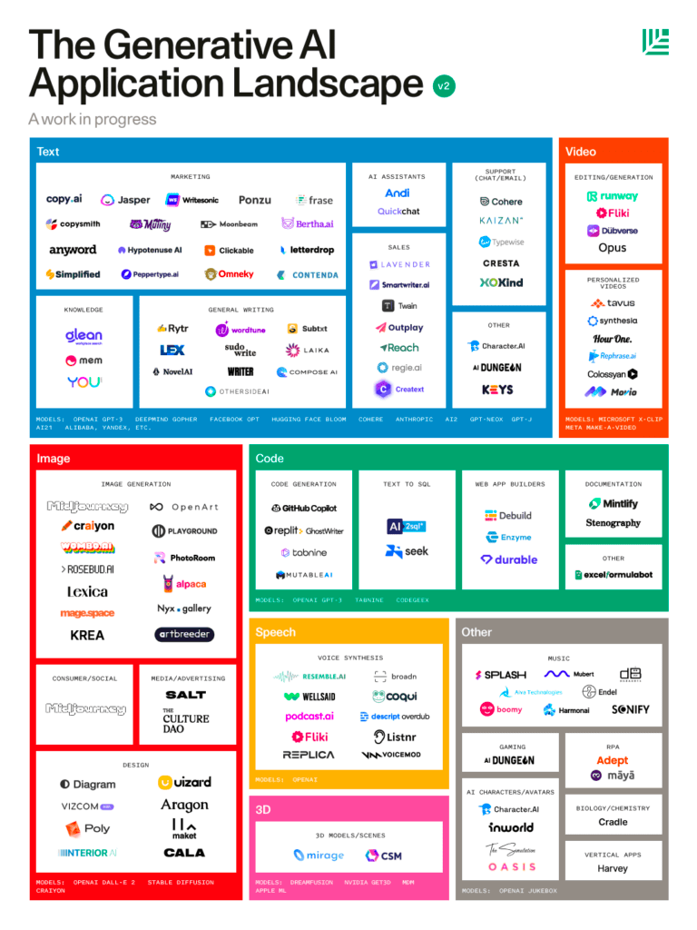 비즈니스적 의의는 AI는 데이터가 필요해서 데이터가 있는 기업들의 전유물 이었는데, Generative AI는 데이터 없이도 결과물을 만들어주기 때문에 수 많은 초기기업들이 생겨나고 경쟁할 미래 영역이 될 수 있습니다. 확실한 경쟁우위를 갖고 있는 경쟁사가 없기 때문에 모두들 각자의 가설로 사업을 시작하고 키우지 않을까 싶습니다.