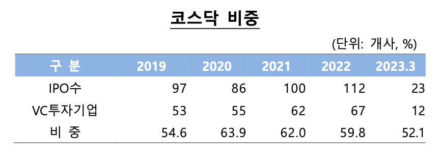 평균 100개가 상장하며 그 중 50~60%만이 VC의 투자를 받아 상장합니다. 모회사 없이 정말 맨바닥에서 시작해서 코스닥시장에 상장할만한 규모를 갖춘 기업까지 자세히 세보면 50개 미만일 것입니다.