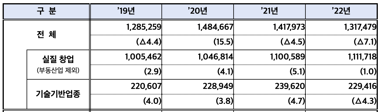 2022년 국내 창업기업은 131만개입니다. 자영업 외 다양한 목적으로도 기업들이 설립된다는 것을 이해하더라도 과연 매년 50개의 IPO Exit이 나오는 시장에서 얼마나 극심한 경쟁을 하고 있는지 이해해보면 재미있는 것 같습니다. 수능 수험생이 41만명인데 반해 서울대 입학정원이 3,233명인것을 생각해보면 경쟁이 산술적으로는 200배 어렵습니다.