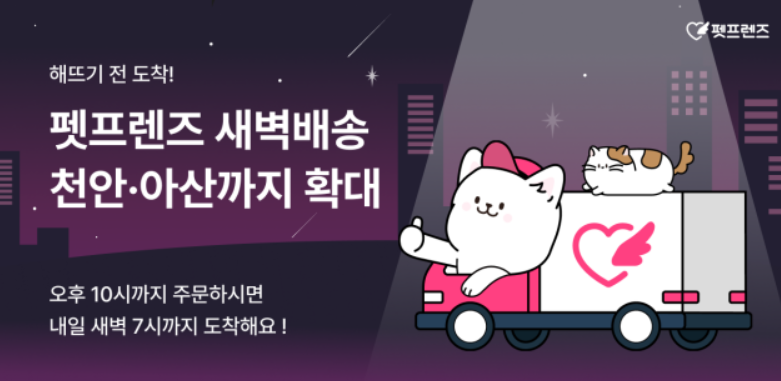 반려동물 이커머스 플랫폼에서도 신규 가입자 유치 및 기존 고객 활성화를 위해 물류배송 경쟁을 이어가며 새벽 배송 서비스를 확대하고 있습니다. 아마존, 쿠팡과 같은 이커머스 플랫폼이 반려동물 시장에서도 점차 형성되고 있는 중이 아닐까 싶습니다.
